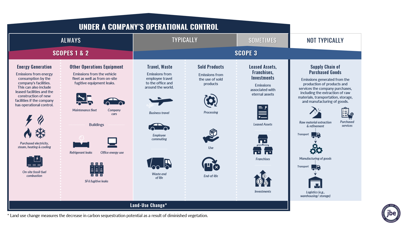 It includes emissions from direct operations and indirect sources like purchased electricity, helping organizations manage and reduce their carbon footprint.