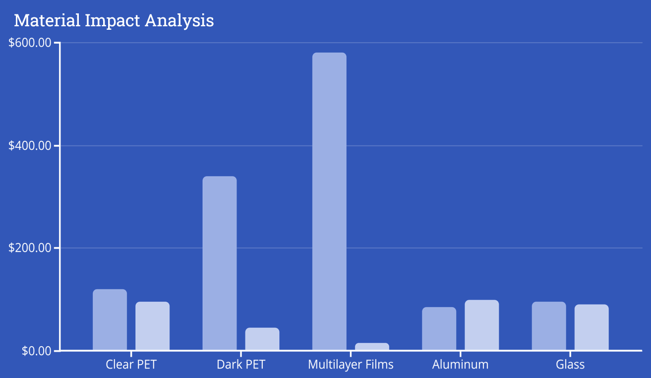 Detailed scoring of each packaging component for recyclability, reusability, and fee exposure. Identify cost-intensive materials for strategic redesign opportunities.